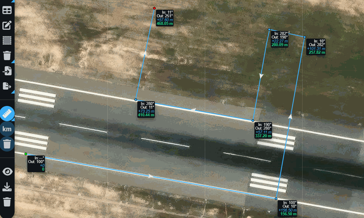 • Blue measurement: Distance from the previous point.