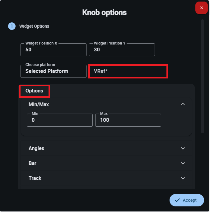 - VRef: Users can choose any real, integer or bit variable to be displayed on the knob.