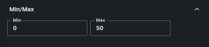 - Min/Max value: Minimum and maximum values displayed in the slider. Defaults are 0 and 1 respectively.