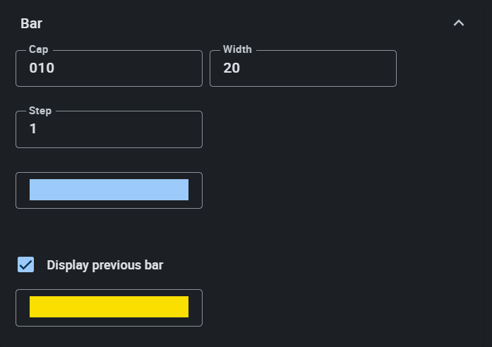 Display previous bar: If enabled, the bar stays colored at the position of the previously set value while the bar is moving to set the new value. Default is enabled.