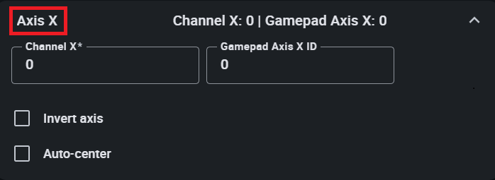 Channel X/Y*: Specifies the internal software channel assigned to the axis. This parameter links the physical movement of the stick to a specific control variable within the platform's logic.