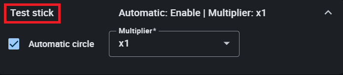 Stick configuration - Test stick - Automatic circle: An automatic circle test is activated.