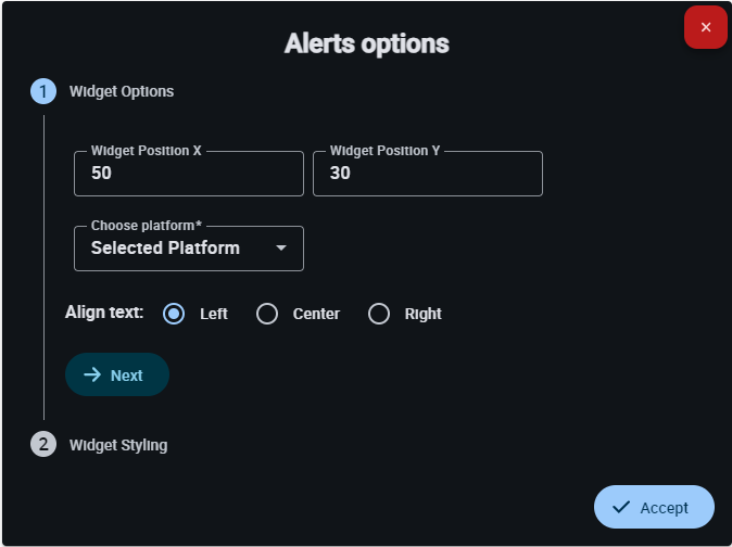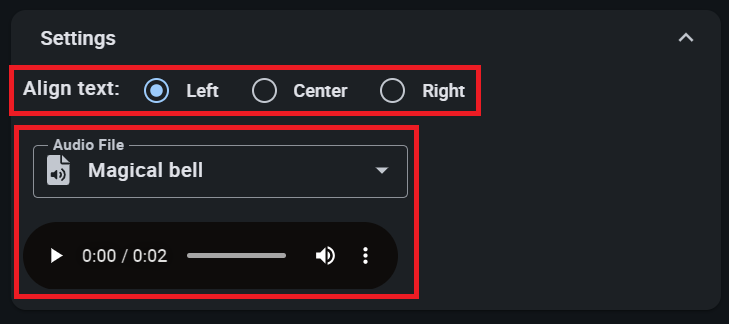 - Align text: This setting determines the horizontal justification of alert messages within the widget.