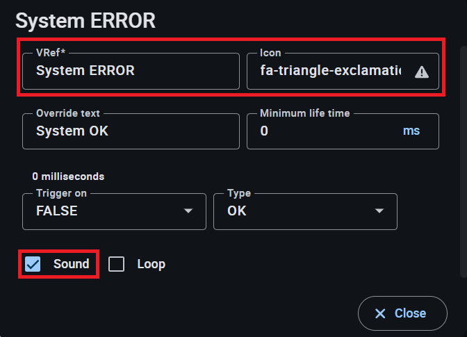 - Icon: Choose the icon to be displayed next to the variable. By default, it is an exclamation icon, as can be seen in the figure above.
