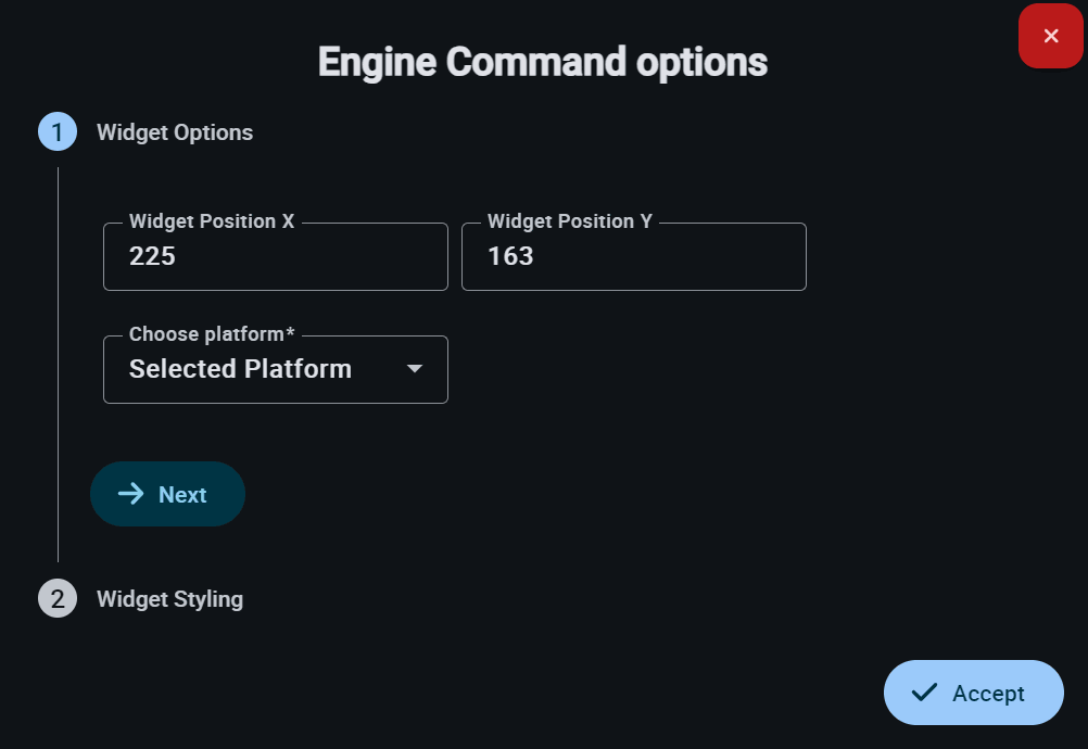 Engine Command allows the operator to configure the location and data source for the engine control widget on the display.