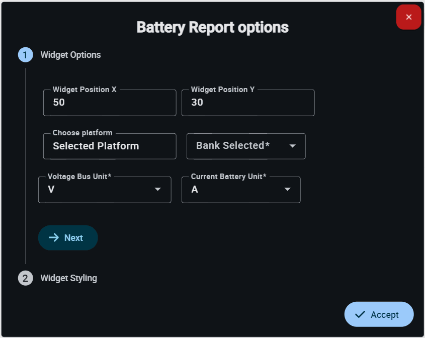 The Battery Report widget enables the user to monitor the system's power parameters in real-time.