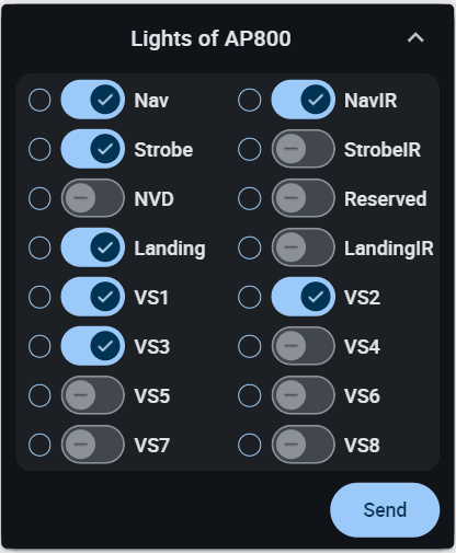 In the Lights widget, it is possible to select specific lights and click 'Send' to update the configuration.