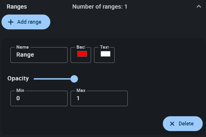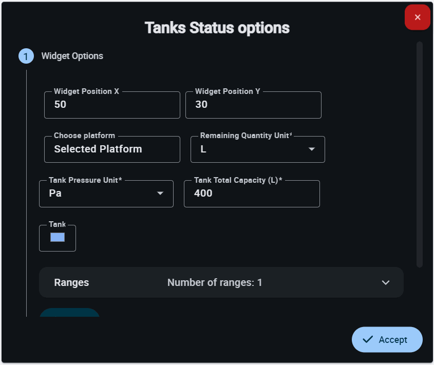 • Background color: Sets the background color of the widget when the tank level or pressure falls within this range.
