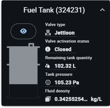 The Tanks Status widget provides the user with a real-time overview of the tank status and allows for direct interaction with the onboard fluid management system.