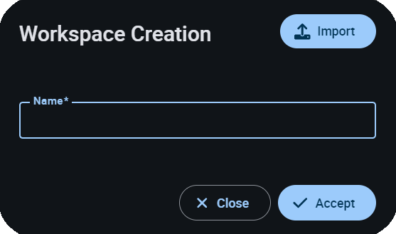 The user can choose between adding an empty workspace or importing one from the laptop, which has been previously exported. To import a workspace, the format file must be a .json.