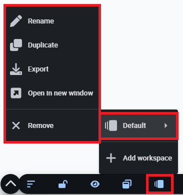 • Duplicate: Duplicates this workspace.