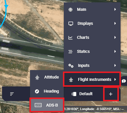 → Flight instruments → ADS-B. An ADS-B widget will be added to the workspace: