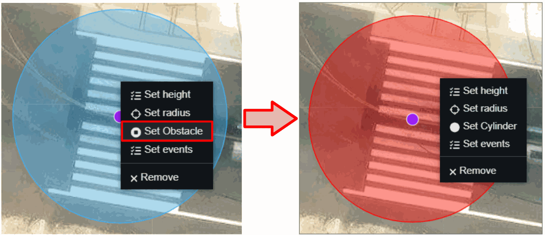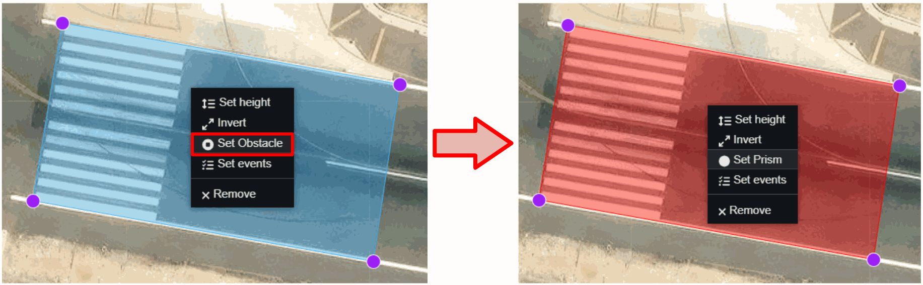 This will be the case until the new changes are saved and uploaded to the autopilot, so the previous operation will be completely removed from the map. An example is shown below: