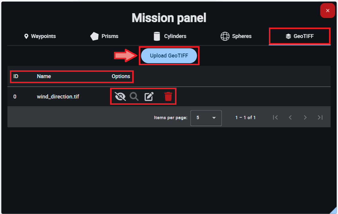 To insert a GeoTIFF image, click the Upload GeoTIFF button and select the desired raster image from the user's local storage.