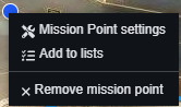 In relation to Mission Points, the following actions can be performed with the mouse: