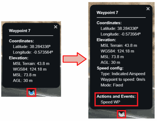 Matching it to the platform position. By selecting the icon, the waypoint coordinates and elevation will be automatically updated with those of the actual platform's actual position.