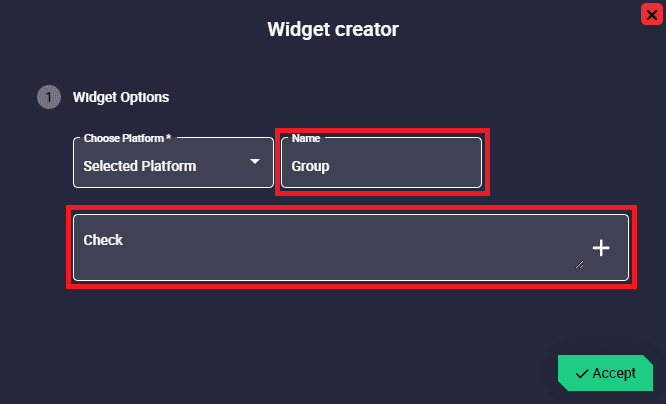 Check: Here users can set the conditions they want for a group to be displayed or not.