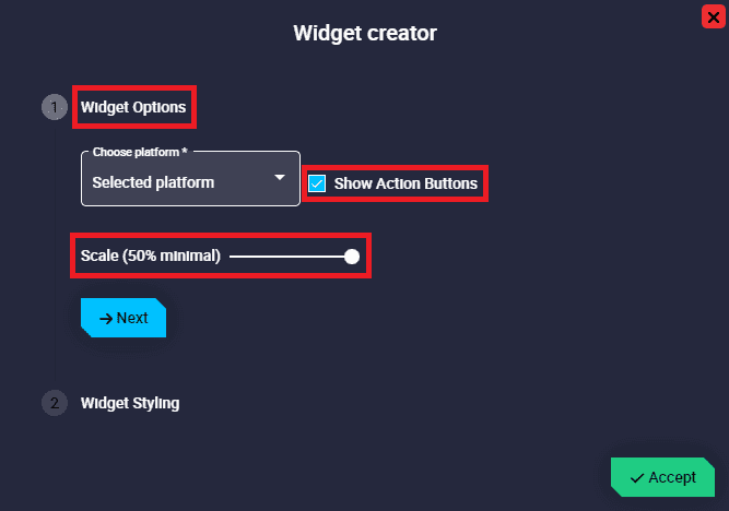 This widget has two extra edit parameters compared to the ones described in Widgets common configuration.