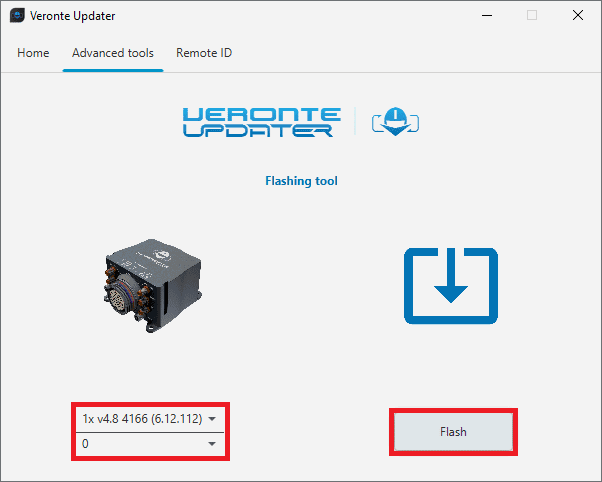 Simply choose the desired unit to be flashed and the slot where the .update file has been located and click Flash: