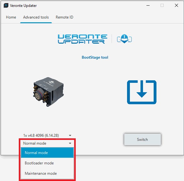 Users can check that Autopilot 1x is displayed in Veronte Link 7 in Bootloader mode version 7.