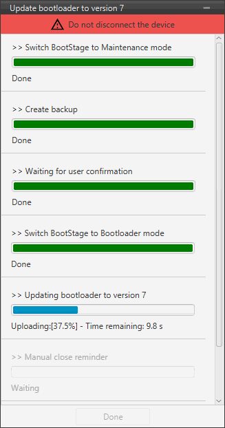 Once the Bootloader has been updated, the following message will appear with manual instructions: