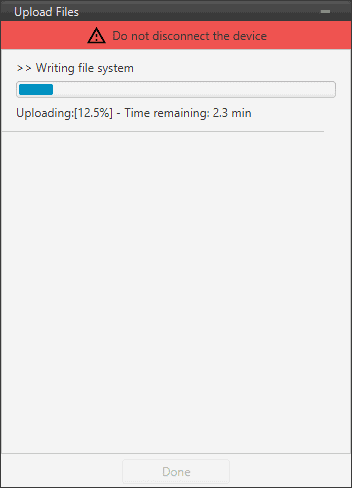 Once confirmed, the uploading process will start and the following window will show the progress.