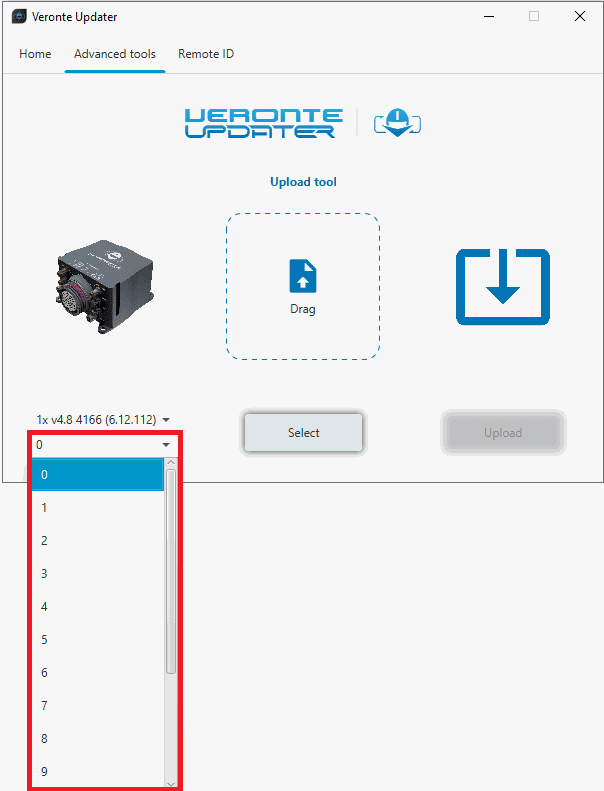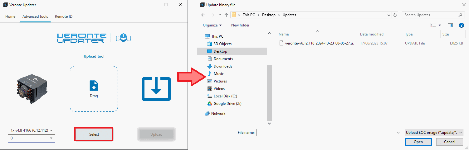 .updatefile and letting Veronte Updater internally place each.binfile contained in the.updatefile into each slot.For instance, if slot 0 is selected, one of the
