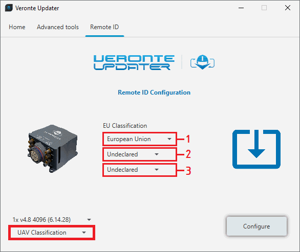 This panel only applies to Veronte Autopilots 1x with Remote ID.
