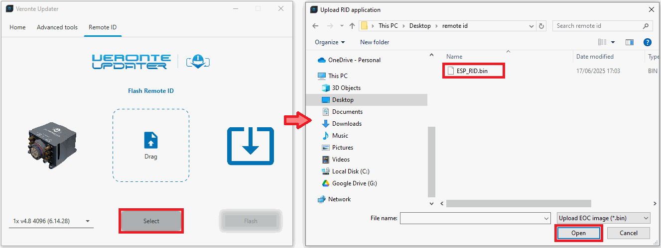 The latter option will open the following browser to select the .bin file stored in the user's local storage: