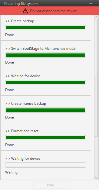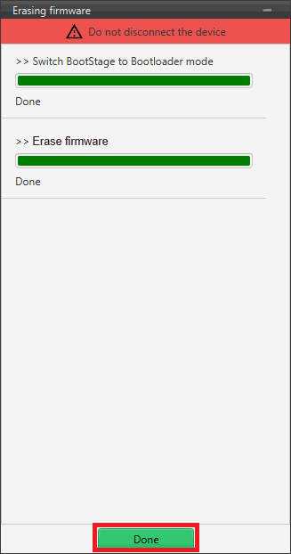 By selecting this option, it is possible to erase the firmware from the connected device. The unit will remain in bootloader mode without firmware.