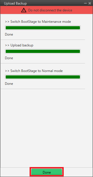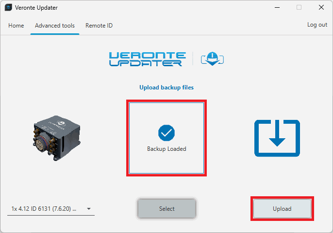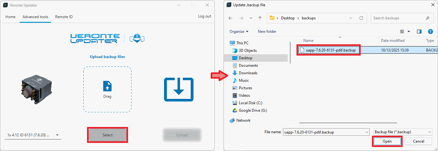By selecting this option, users can upload the .backup file to the connected device.