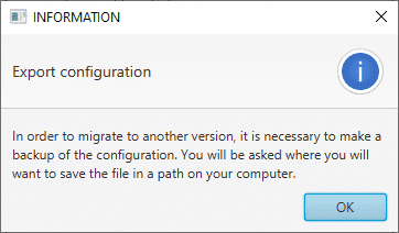 Before the process starts, users must save a back up of the current configuration.