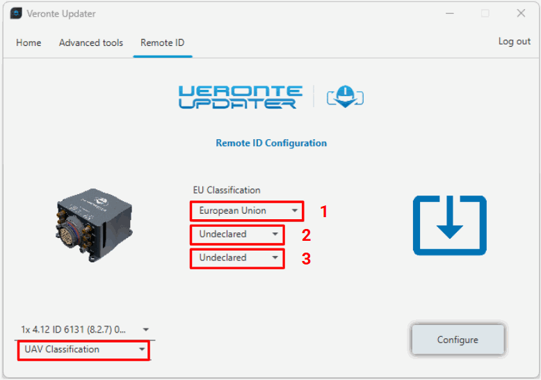 This panel only applies to Veronte Autopilots 1x with Remote ID.