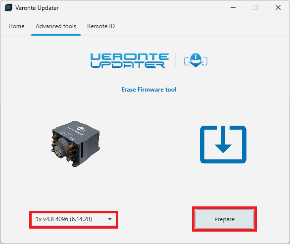 By selecting this option, it is possible to erase the firmware from the connected device. The unit will remain in bootloader mode without firmware.