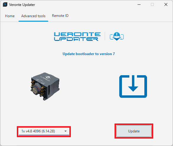 Users can check that Autopilot 1x is displayed in Veronte Link 7 in Bootloader mode version 7.