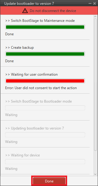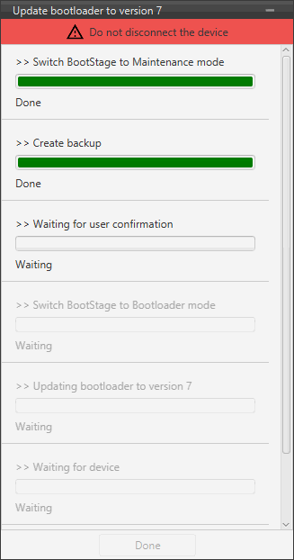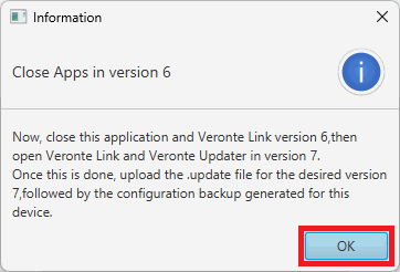 At this point, the process of updating the Bootloader is complete. Users must now continue updating the device to version 7 using Veront Updater version 7.