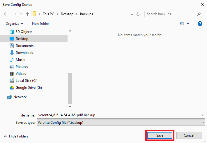 Once the .backup file is loaded, click on Update to send the configuracion to the device.