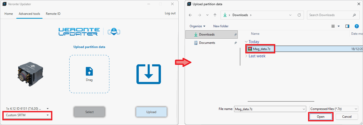 Veronte Updater shall require the user to carry out this action in the event that the device's file memory has no magnetic field and geoid data.