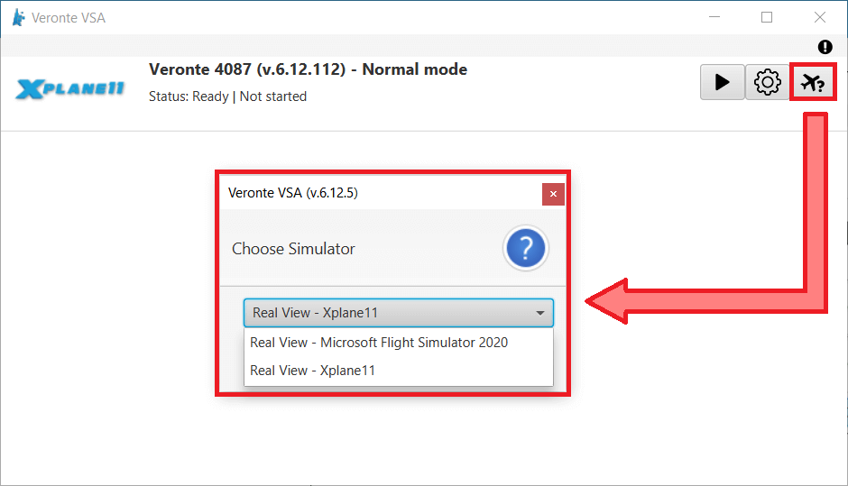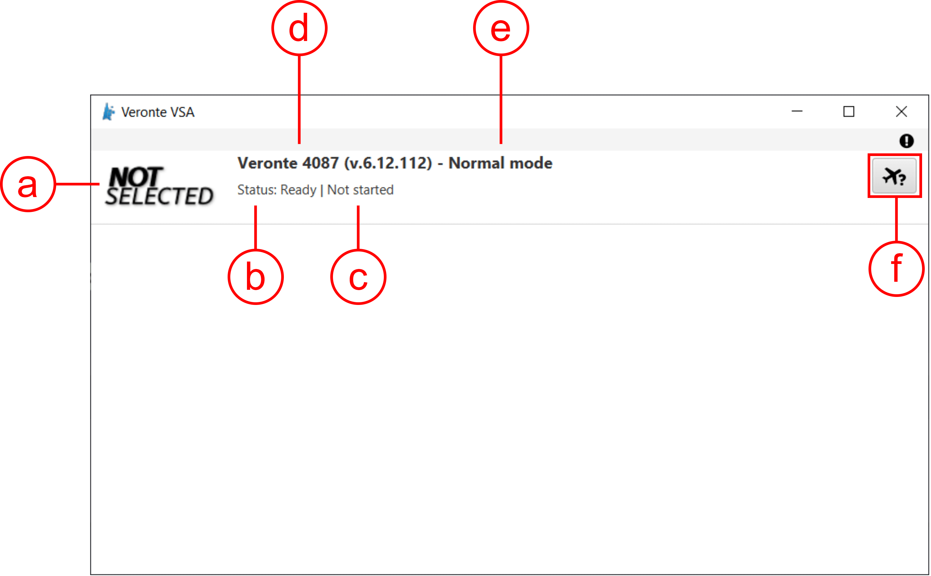 Veronte VSA - Main menu a. Simulator icon: The icon of the selected simulator is displayed.
